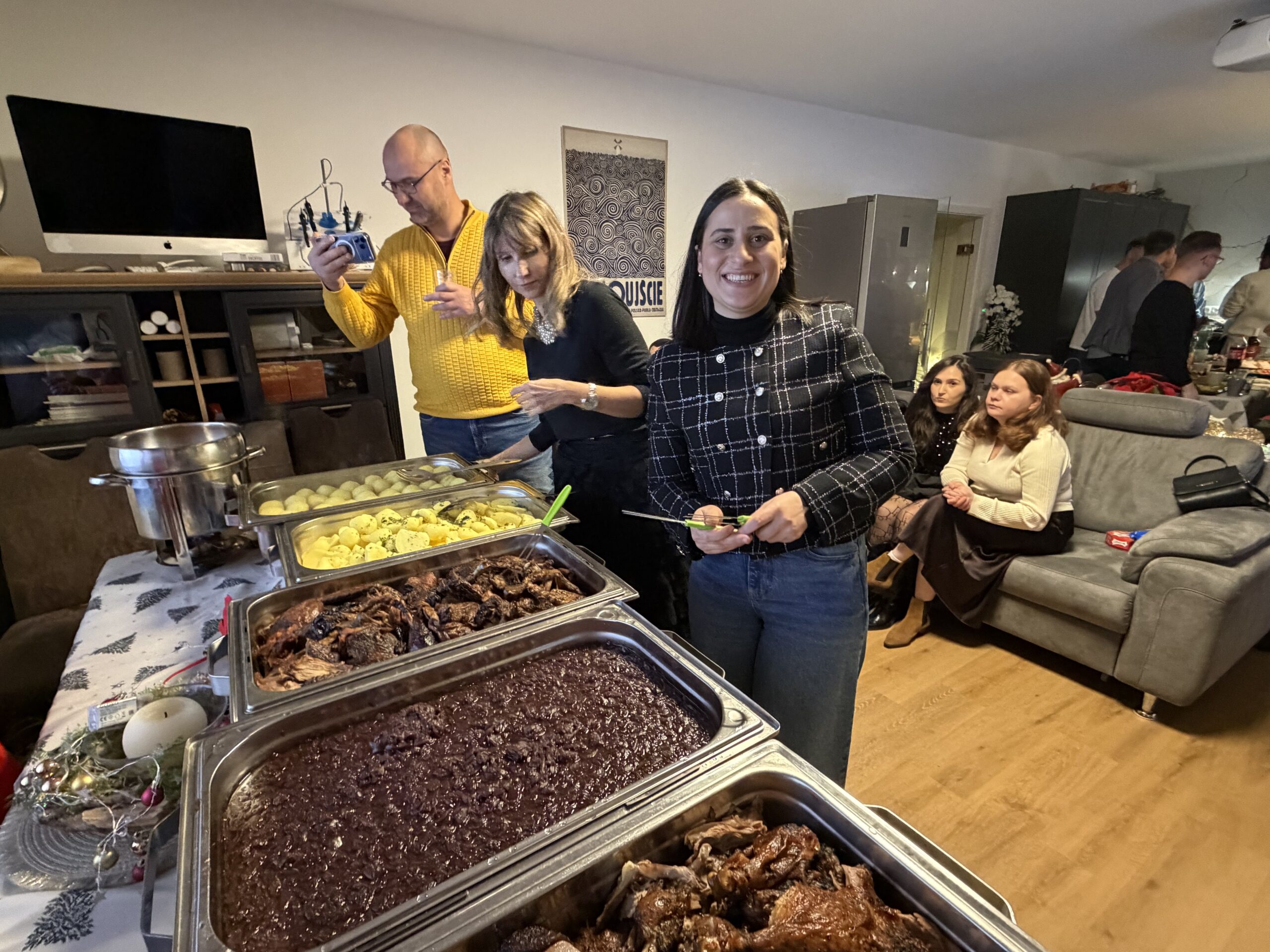 Die Weihnachtsfeier markiert für uns jedes Jahr einen besinnlichen Jahresabschluss und bietet die Gelegenheit, gemeinsam innezuhalten und das Erreichte und die Fortschritte zu feiern. Es ist bereits eine geschätzte Tradition, die nicht nur den Zusammenhalt unter den Bewohnern der Akademie stärkt, sondern auch die Vielfalt innerhalb der Akademie würdigt. Menschen aus ganz Europa finden an diesem Abend zusammen, um bei Speis und Trank Gemeinschaft zu erleben. Diese besonderen Momente des Austauschs und der Freude sind ein Herzstück unseres Handelns. Die festliche Atmosphäre und das Miteinander machen die Weihnachtsfeier zu einem Highlight des Jahres.